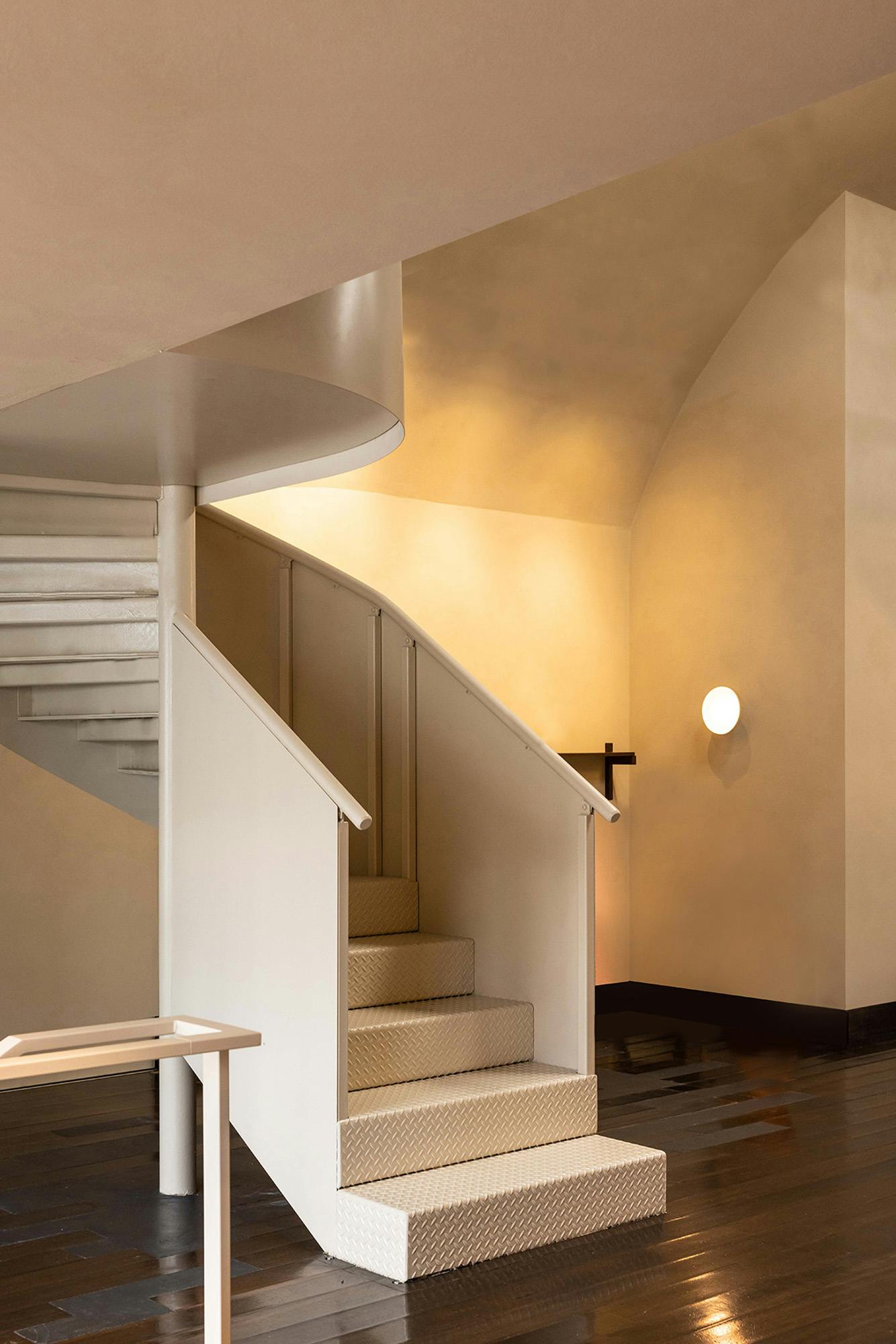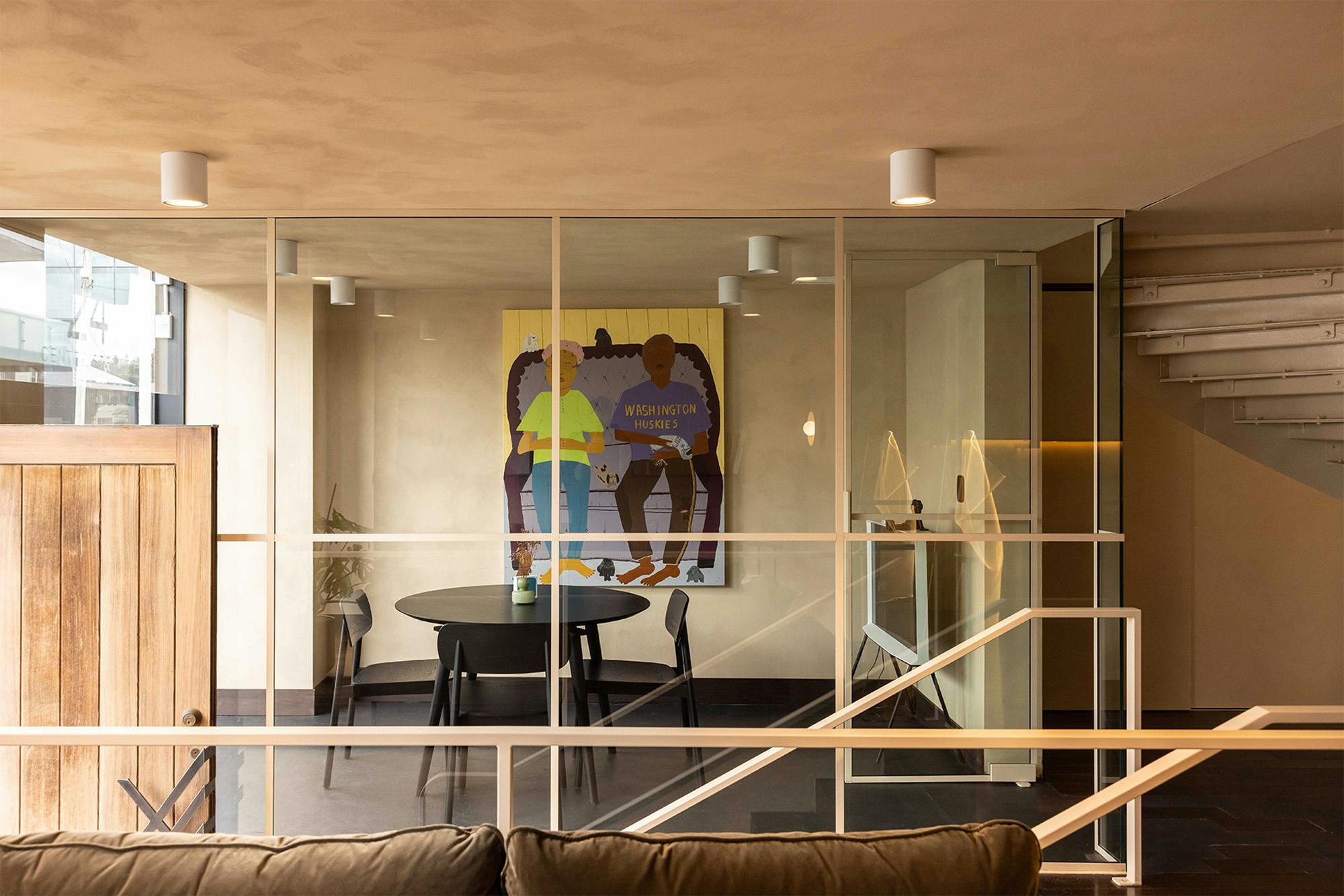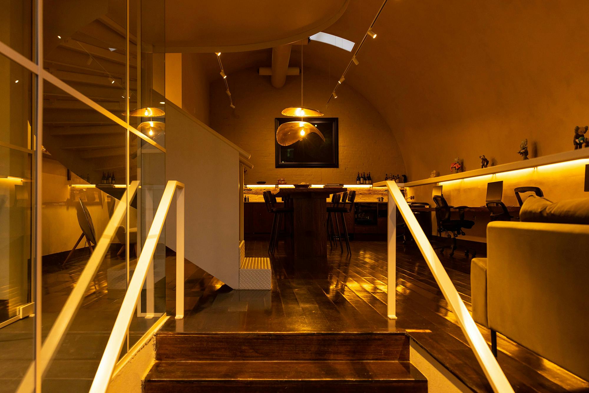 As you walk up the spiral staircase & into the mezzanine meeting lounge, the mood develops.