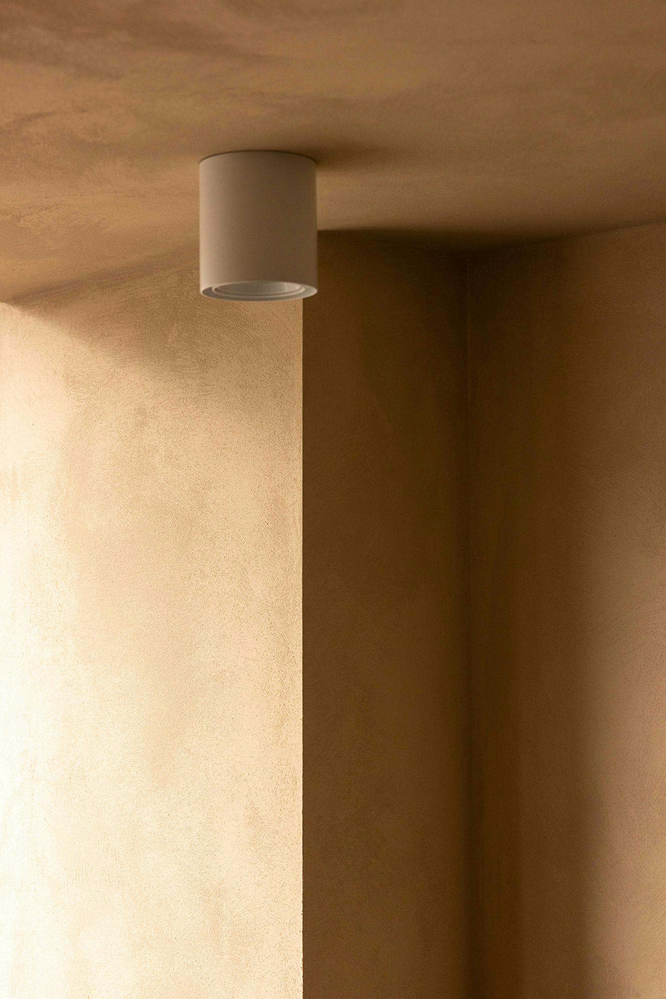 Thick plaster textures the walls & ceiling, enshrouding the workspace with soft calm comfort.