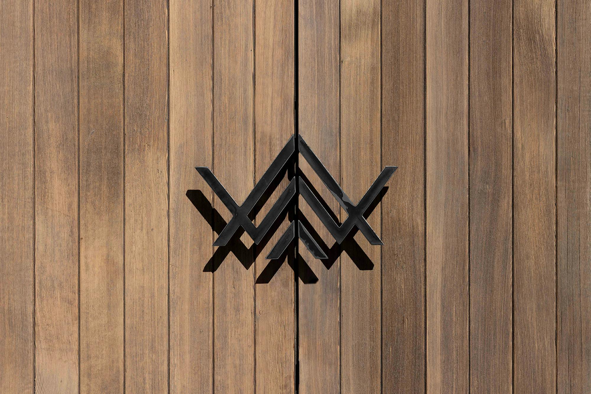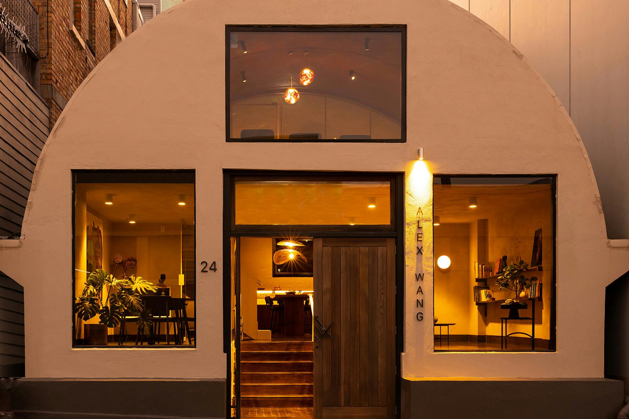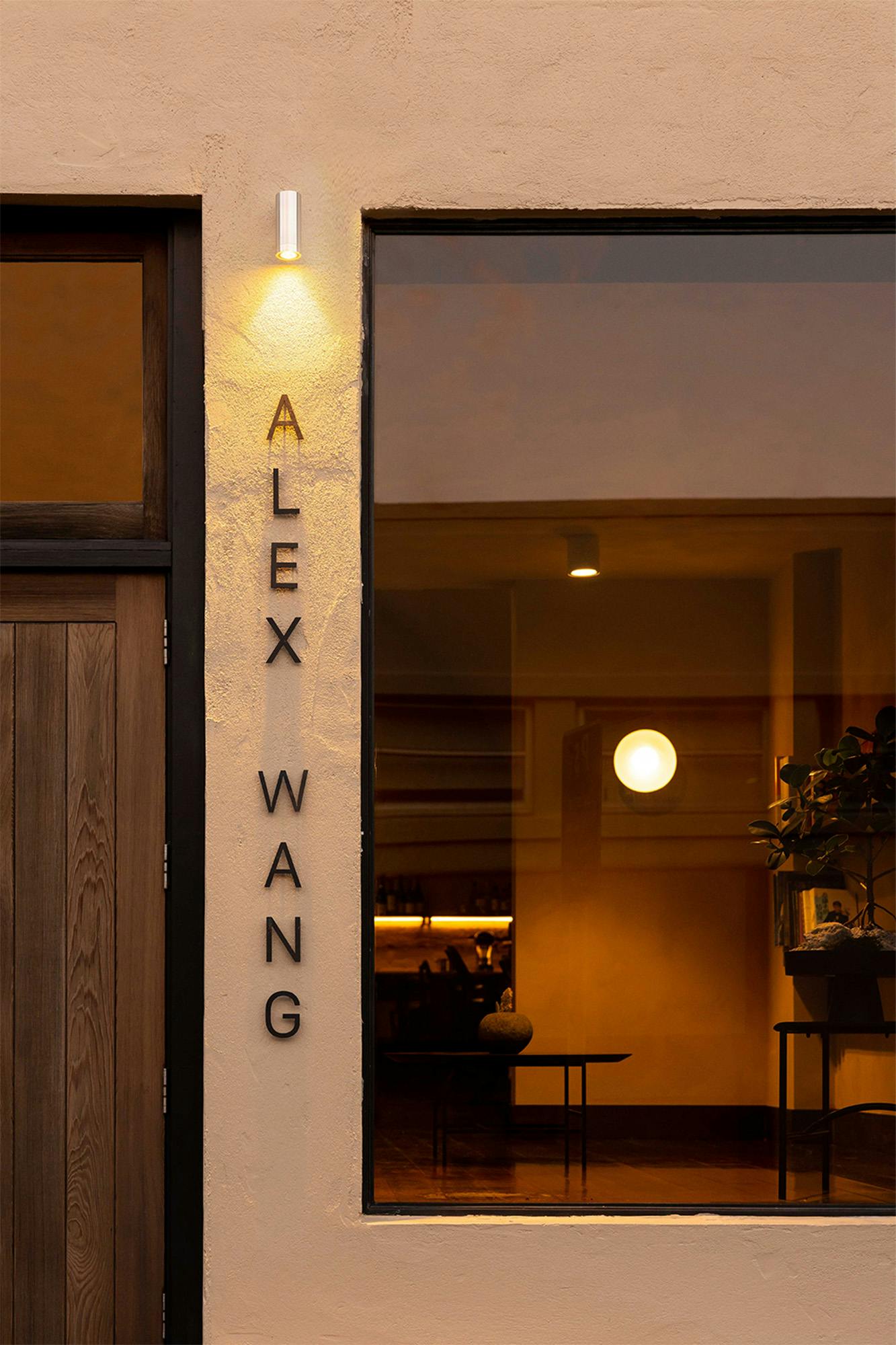 Below, the Alex Wang logo is cut from mild steel and installed as a double-pull set.