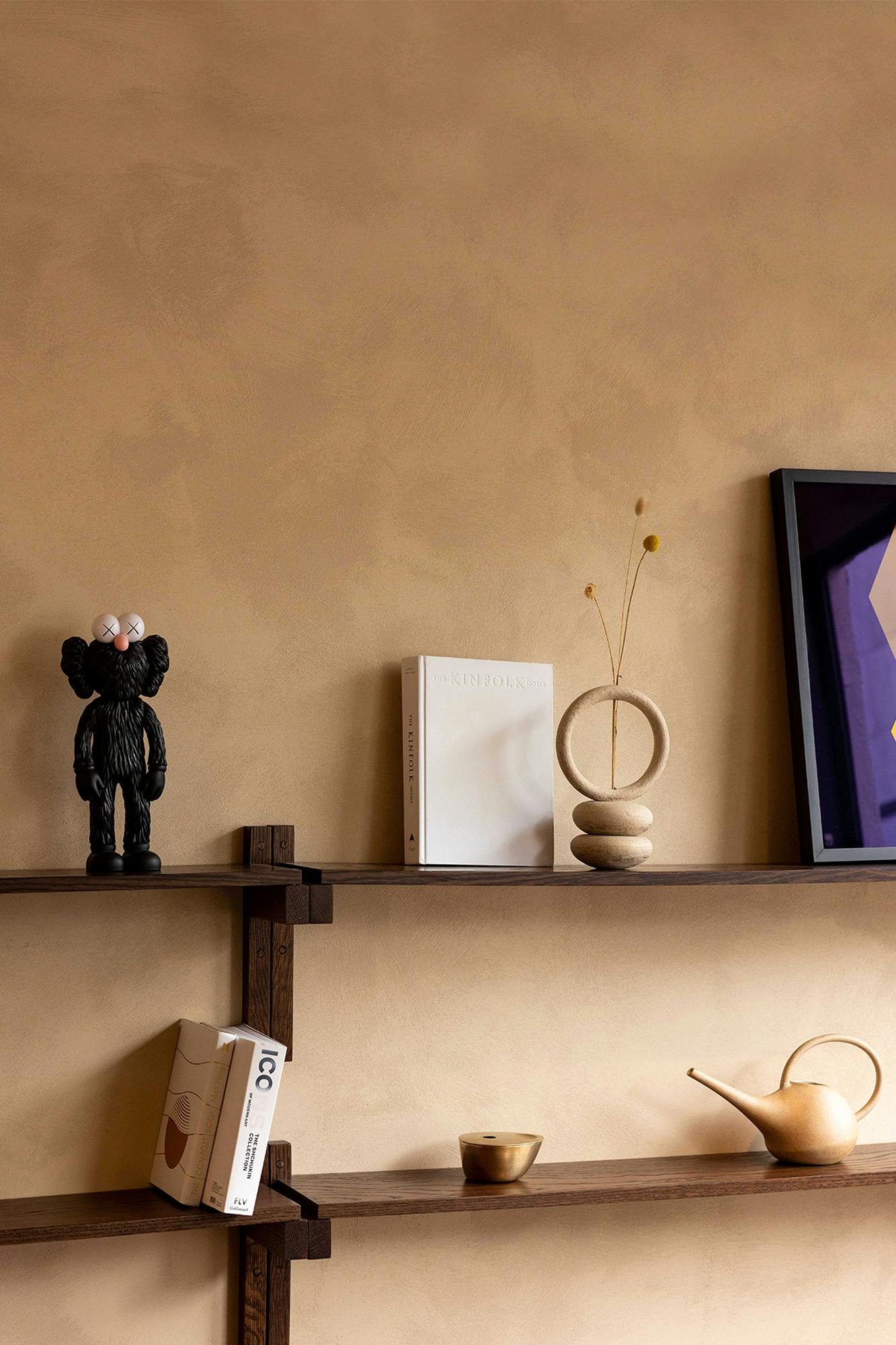 Wabi-sabi timber cabinetry is custom for site, offering many spaces for Alex Wang to display his personal collection of art & sculpture.