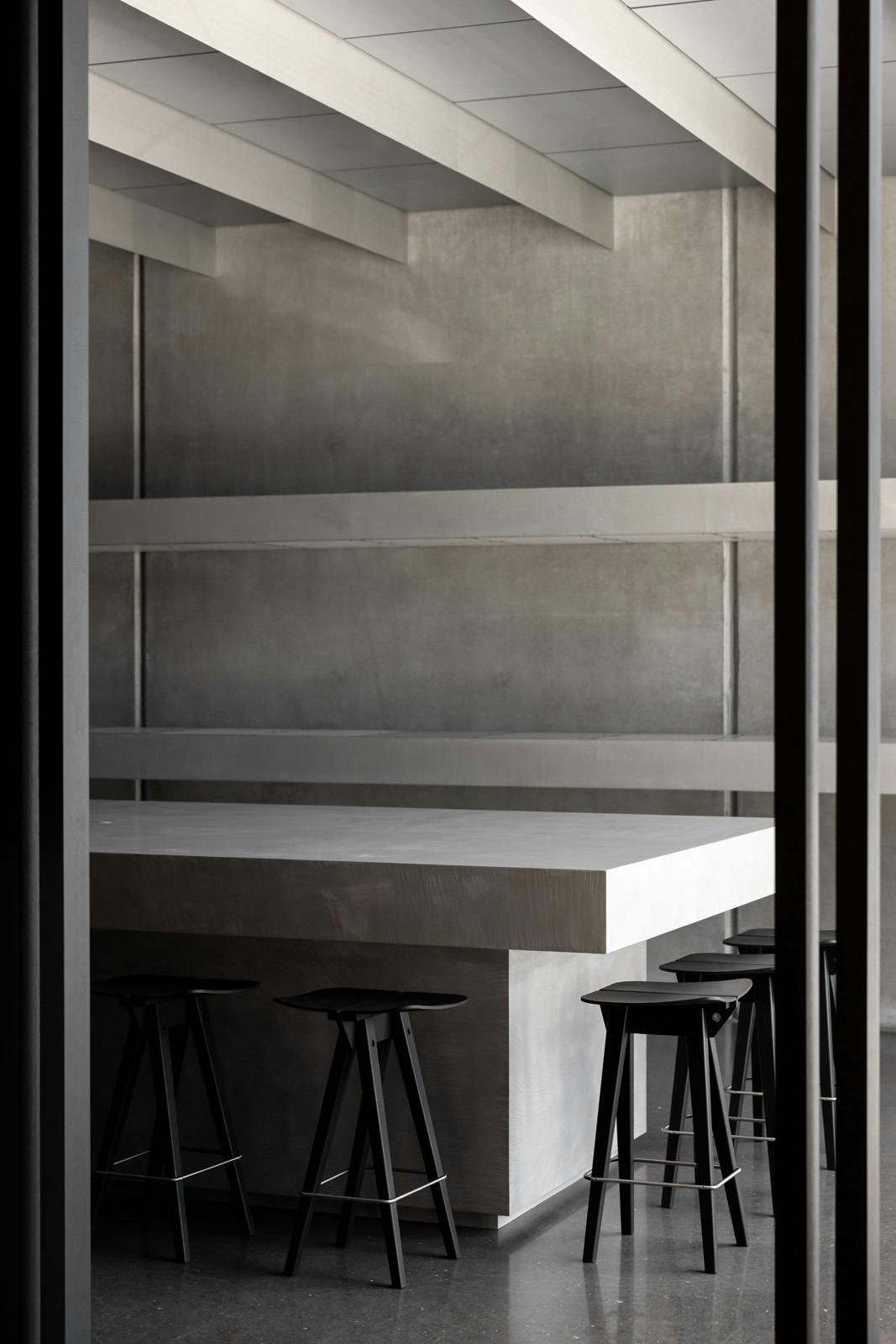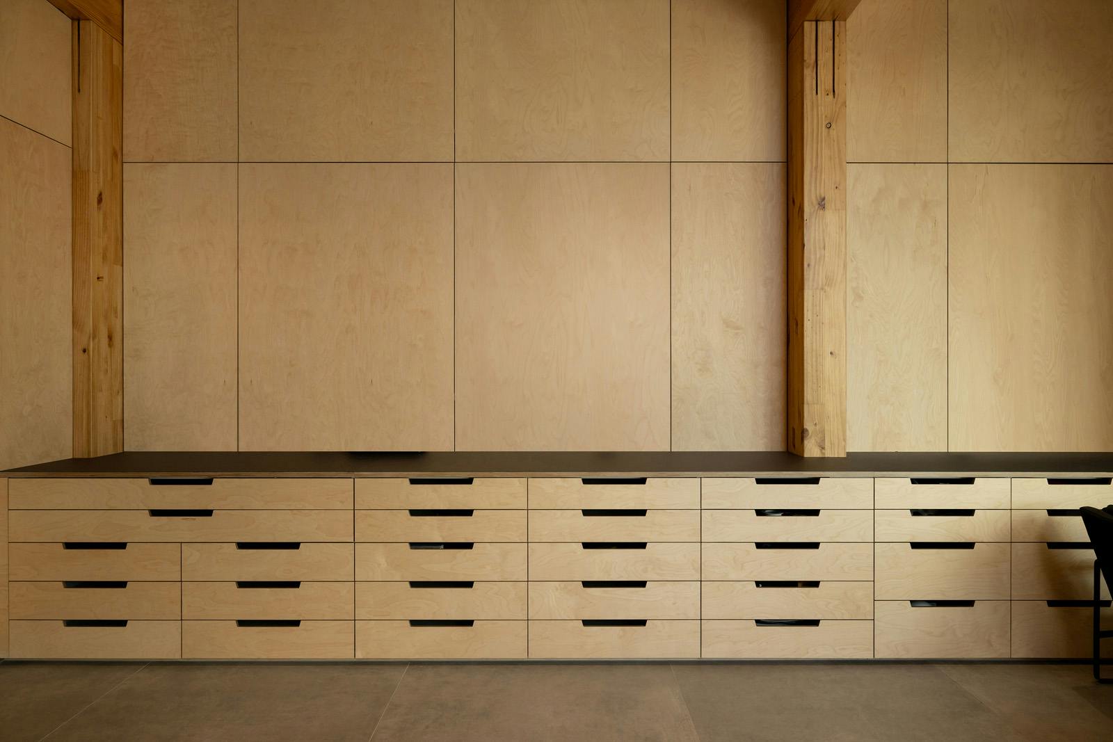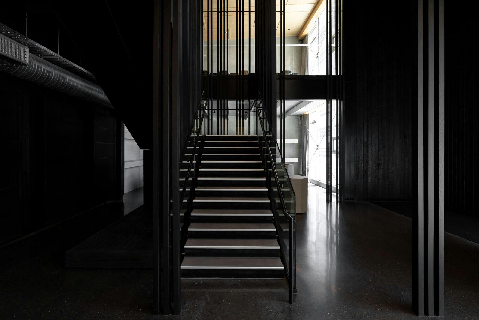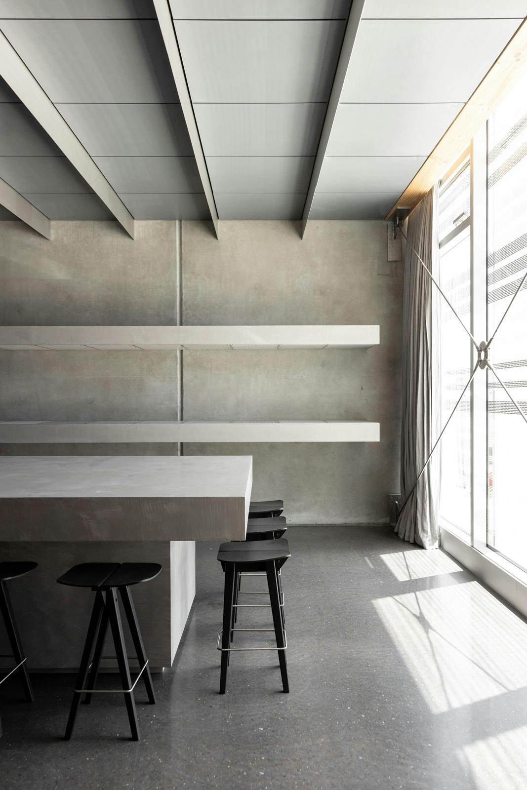 A rigorously spartan environment of greyscale finishes drives home the utilitarian, with warmth introduced by way of structural timber & ply to areas that required a certain softness. The cold-rolled steel still has the stamps, and comforts are limited to those that are necessary.