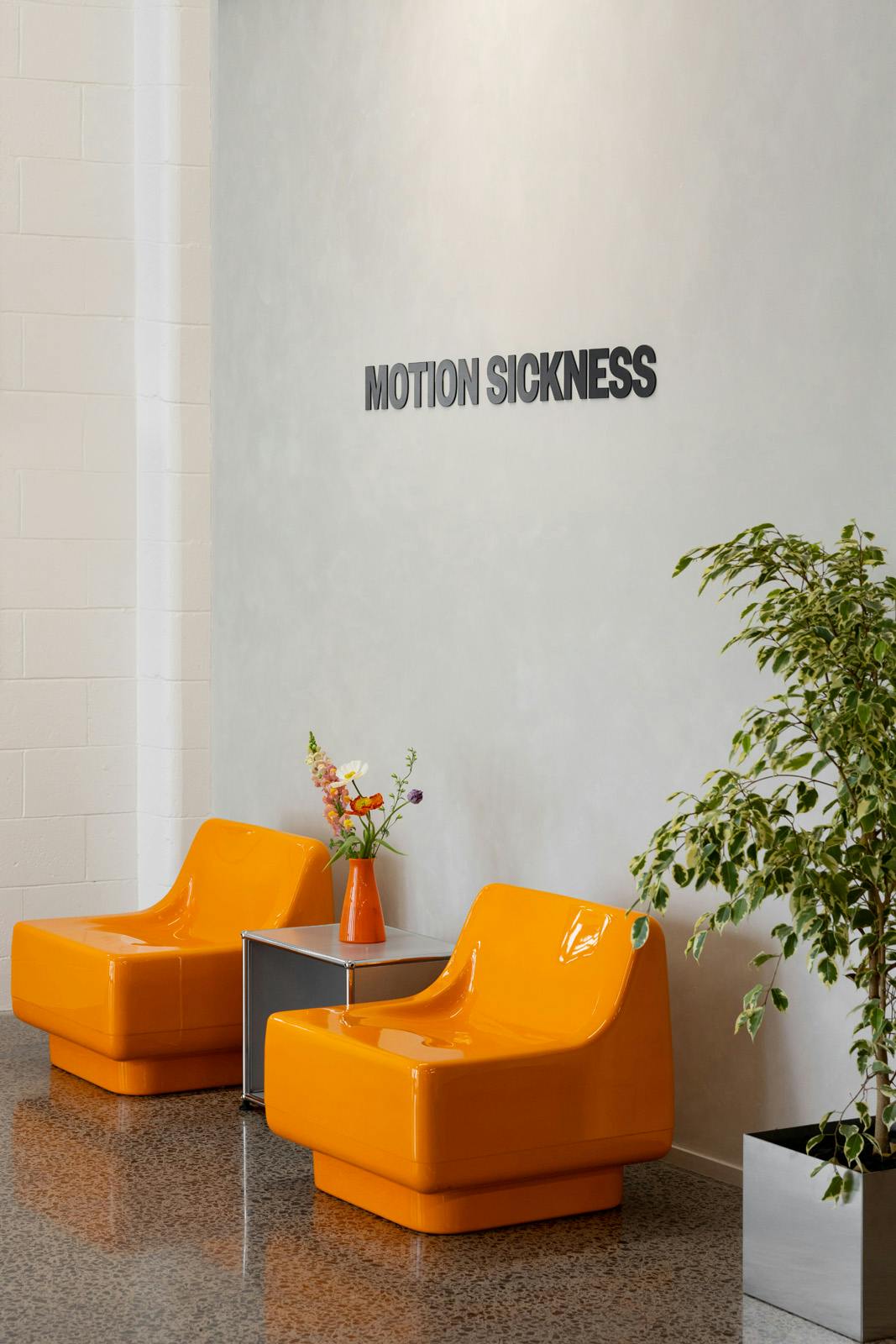 Effortless yet character-full, the space most importantly reflects the fluid and unconventional nature of Motion Sickness’ incredible work.